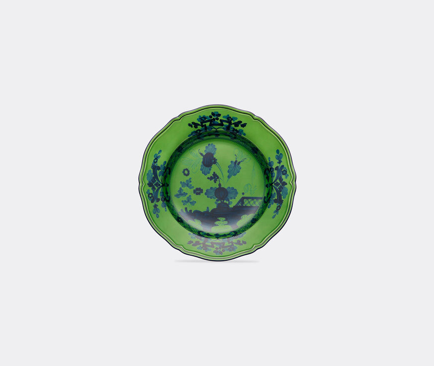 Prominently featuring Yasuhiro Kikuoka's reinterpretation of the 'garofano' — a highly stylised carnation applied in chinoiserie style to Florentine ceramics — Richard Ginori's 'Oriente Italiano' collection is a throwback to times long passed. Defined by delicate hues produced using an airbrush technique on the porcelain giant's famed 'Antico Doccia' style of tableware, the series presents a rich and exotic aesthetic. This 'Oriente Italiano' soup plate brings together high quality Italian porcelain with shades of vibrant green and navy blue for an exuberant contrast that will liven the table.