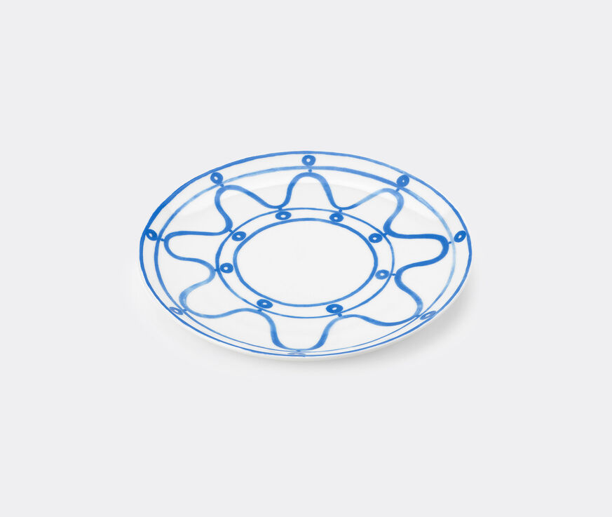 Artisanally crafted in Greece, the fine porcelain 'Serenity' dinner plate is handpainted with soothing continous lines in a soft blue. Capturing the perpetual movement of breath and life, the piece brings the tradition and tranquility of Greek island life to tabletops. Maximize the aesthetic with other tableware from the THEMIS Z collection.