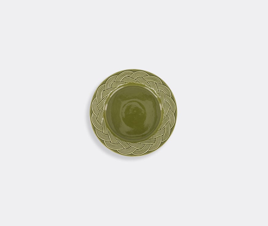 House of Capricorn’s 'Vime' dinnerware collection encapsulates the brand’s focus on heritage handcrafts. An expression of rustic elegance, the design is characterized by an interlaced pattern around the rim, inspired by wickerwork. This glazed dessert plate is presented in a graceful green with natural textured detailing. Suitable for everyday and occasion dining, plates can be paired with other pieces from the collection for stylish tablescapes.