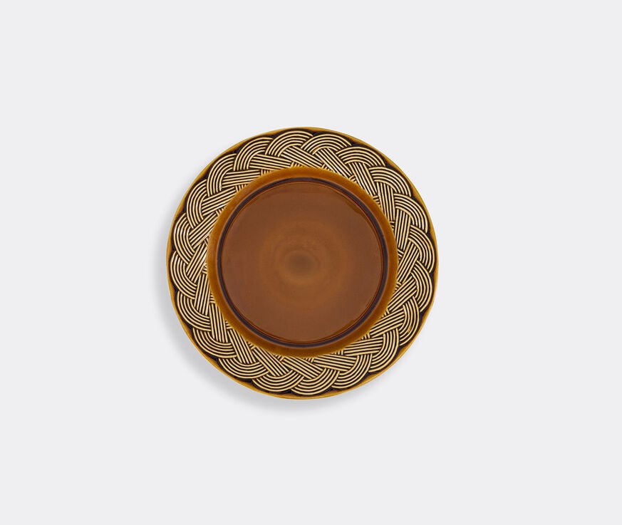 House of Capricorn’s 'Vime' dinnerware collection encapsulates the brand’s focus on heritage handcrafts. An expression of rustic elegance, the design is characterized by an interlaced pattern around the rim, inspired by wickerwork. This glazed dinner plate is presented in a rich brown with natural textured detailing. Suitable for everyday and occasion dining, plates can be paired with other pieces from the collection for stylish tablescapes.