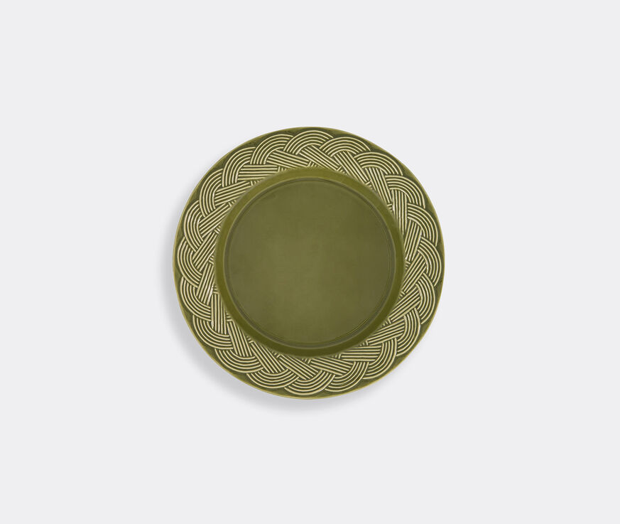 House of Capricorn’s 'Vime' dinnerware collection encapsulates the brand’s focus on heritage handcrafts. An expression of rustic elegance, the design is characterized by an interlaced pattern around the rim, inspired by wickerwork. This glazed dinner plate is presented in a graceful green with natural textured detailing. Suitable for everyday and occasion dining, plates can be paired with other pieces from the collection for stylish tablescapes.