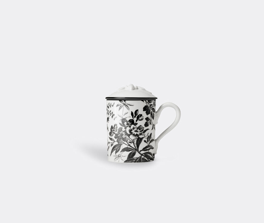 Gucci's Herbarium print — a vintage-inspired Toile de Jouy pattern that takes in cherry branches, leaves and flowers — is applied to a series of single mugs, which literally bring the Italian fashion house's signature élan and boldness to the table. This white Richard Ginori porcelain coffee mug features the print across its body and is topped with a lid that is moulded with the shape of a bee — a historical emblem retrieved from the brand's 1970s archives. Dishwasher safe.