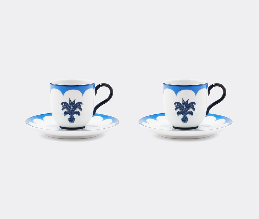 Carrying the brand's trademark pineapple emblem, this elegant coffee cup and saucer from Aquazzura Casa’s 'Jaipur' collection, which comes as a set of two, combines contrasting shades in the blue version of this ode to a city. Each cup and saucer is encircled with cusps evoking Mughal and Rajput arches. This classic and inspiring design can be blended with other tea and coffeeware from the collection for the full effect.