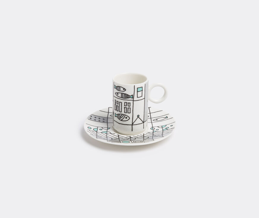 L'Abitare applies colours, forms and intricate design details of the highest degree to create expertly crafted and deeply personal accessories for the home. This porcelain coffee cup and saucer set features a metropolitan fish illustration in beautiful colour tones that will instantly enliven breakfast lunch and dinner parties.