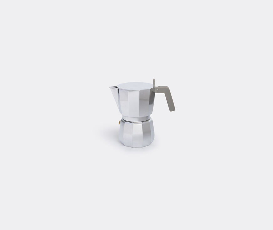 Designed by British architect David Chipperfield for Alessi, the 'Moka' espresso coffee pot is a celebration of one of Italy's favourite pastimes: coffee drinking. Multifaceted, with eleven sides, the stainless steel pot is a modernised update of Alfonso Bialetti's early 1900s original. Contemporary innovations include a flat lid, upon which users can rest and warm up waiting coffee cups, while an angled grey thermoplastic resin handle allows for easy, seamless pouring. This pot has the capacity to create one cup of coffee.