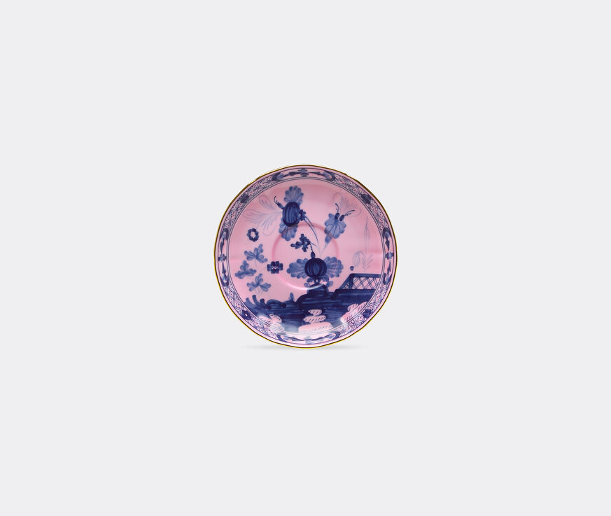 Prominently featuring Yasuhiro Kikuoka's reinterpretation of the 'garofano' — a highly stylised carnation applied in chinoiserie style to Florentine ceramics — Richard Ginori's 'Oriente Italiano' collection is a throwback to times long passed. Defined by delicate hues produced using an airbrush technique on the porcelain giant's famed 'Antico Doccia' style of tableware, the series presents a rich and exotic aesthetic. This 'Oriente Italiano' coffee saucer brings together high quality Italian porcelain with shades of vibrant pink and navy blue for an exuberant contrast that will liven the table.