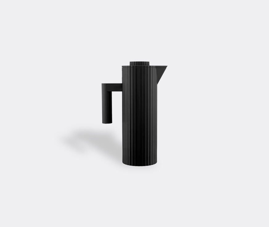 A smooth marriage of technical requirements and elegant design, this insulated jug by Michele De Lucchi for Alessi ticks all the boxes. Defined by raised geometric lines applied vertically across its surface, the 1000ml black thermoplastic resin container is iconic and timeless in equal measure, with a distinct silhouette punctuated by a sharp beak and a long handle.