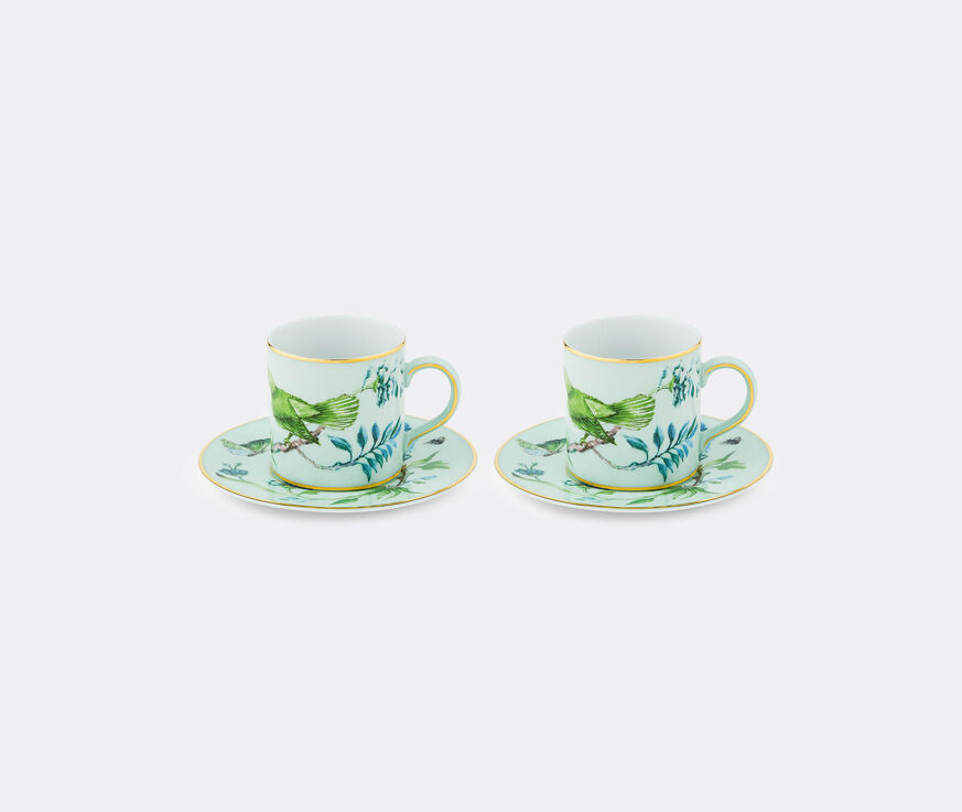 In Aquazzura Casa’s 'Secret Garden' collection, delicate boughs, blossoms, birds, bees, and butterflies coalesce in a naturalistic, ecstatic symphony. Drawn in minute detail, and finished with a fine gold accent, the collection includes this elegant coffee cup and saucer, which comes as a set of two. The design can be blended with other tea and coffeeware from the series for a lush, abundant tablescape.