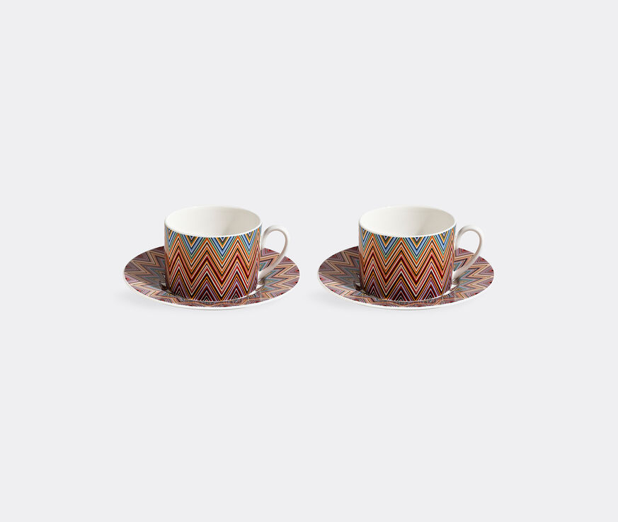Fashion brand Missoni has been producing knitwear bearing its signature zigzag motifs, stripes, waves and slub yarns since 1953. The 'Zig Zag Jarris' collection, with its multicolour zigzag print in bright tones, is a great example of how the brand has successfully adapted these same themes for homeware items produced by Its interiors spinoff — MissoniHome. This teacup and saucer set brings together an intense spectrum of colours in a variable degrade effect for a duo suited to all occasions.