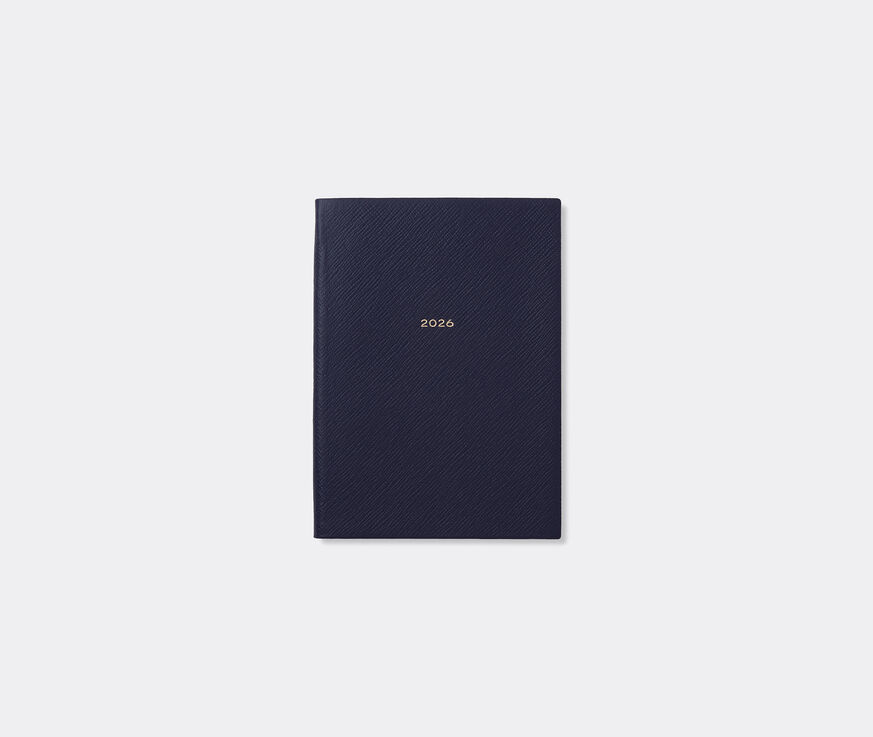 Bound in grained calf leather, the '2026 Soho' diary presents a week-to-view layout and notes pages on signature featherweight pale blue paper. A slip pocket and perforated corners enhance ease of use. Made in England, the ultimate diary by the quintessential stationer combines timeless Smythson craftsmanship and functionality, in navy.